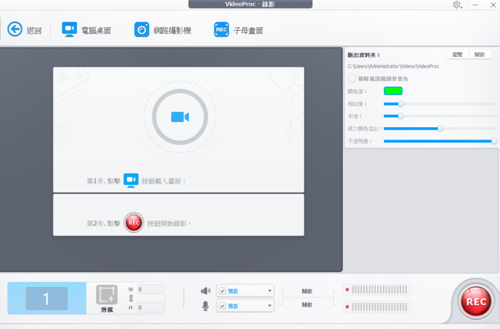 • 3 種錄影模式:電腦桌面、網路攝像頭、子母畫面