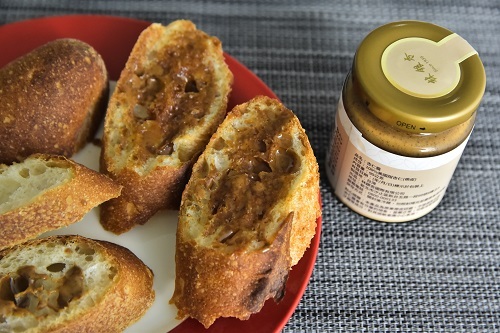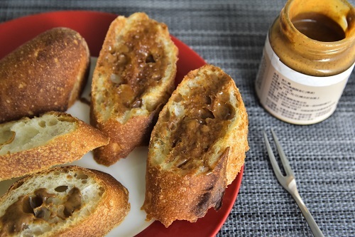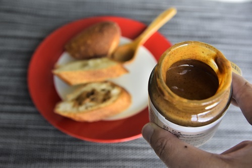我原本以為打開會像花生醬一樣但是它的質地更滑順聞起來很香,抹一點在麵包上進烤箱烤香氣更是整個冒出來,杏仁味道濃郁香醇很好吃
