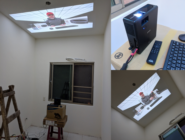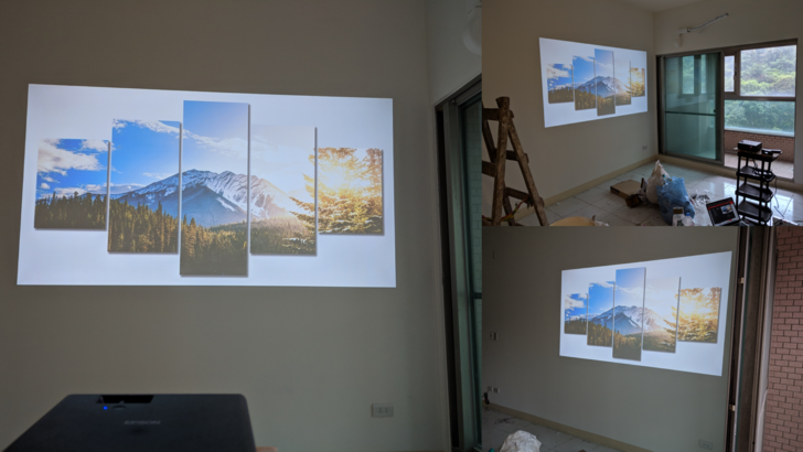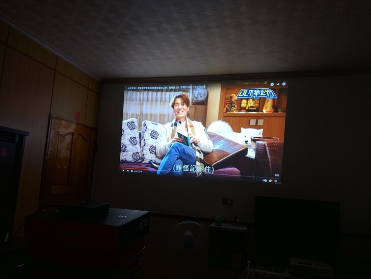 其實上述畫面都一直是打向投影機正前方(比較靠近左邊),但想起體驗會時廠商代表們曾展露過一手自動水平校正,我當下也立馬將投射燈轉往臥房牆面的正中間,整體補償下來的效果確實一絕,這下子更能稱職地當個年節沙發馬鈴薯了。而最可怕的體驗感受之一是,當享受過EF-11的不小心就能升級電視牆的魔法過後,再也回不去以前把筆電接上55吋液晶電視就覺得很感動的那種興奮…