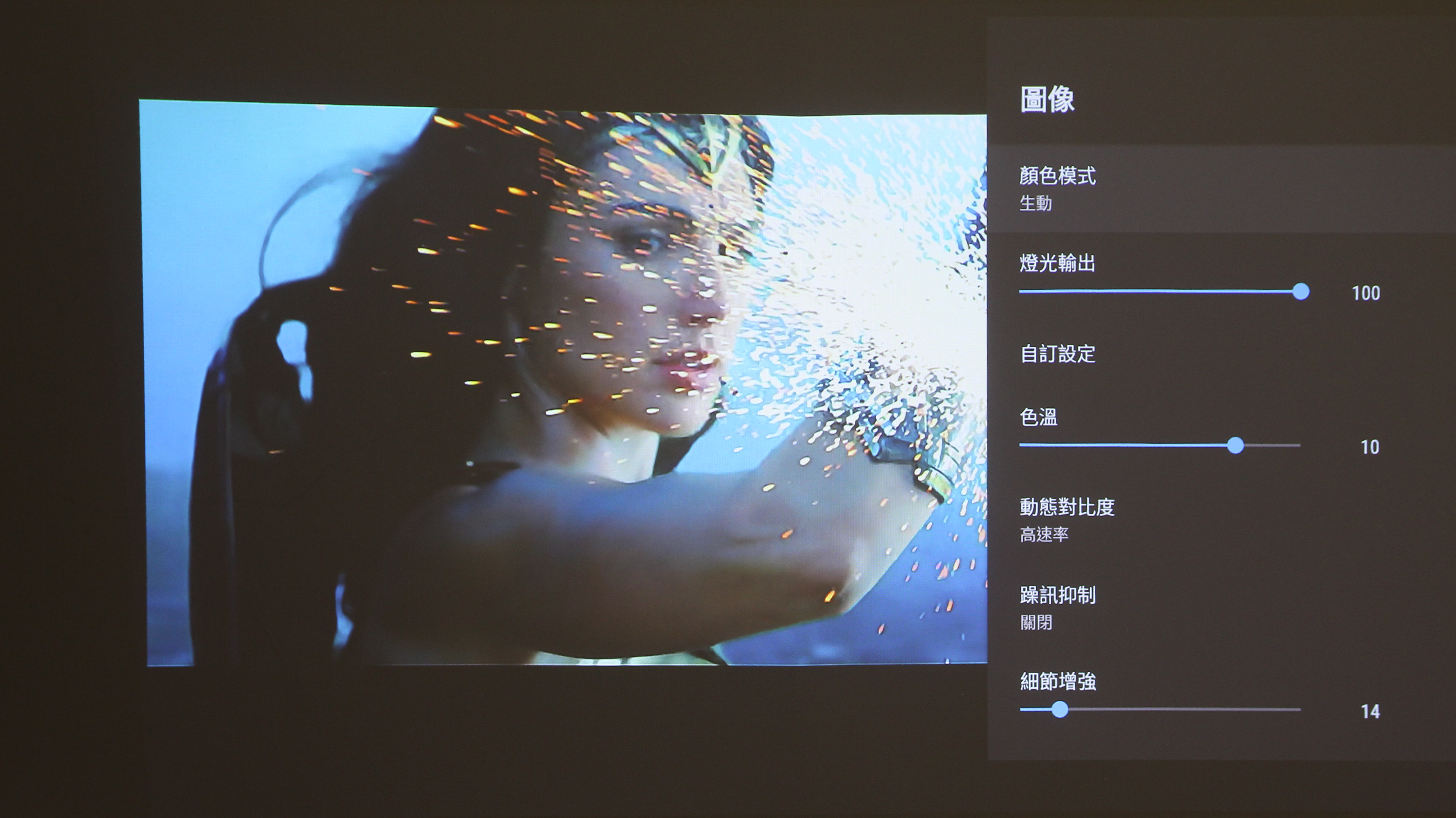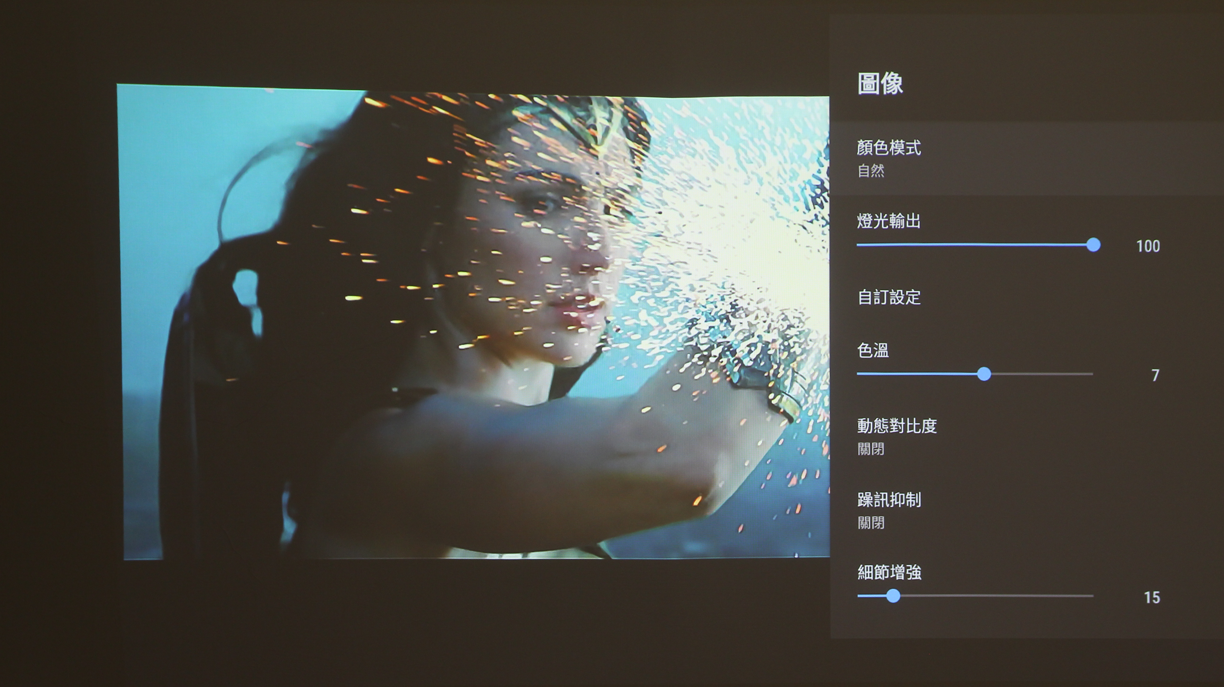 比起色彩,筆者覺得流明更影嚮觀看體驗。一般微型投影機的流明通常落在300左右,所以只要非全暗環境觀影體驗就很差。便攜型投影機,流明相對高一點落在700左右,在點燈的環境或日光照射的空間,觀影體驗是比微型投影機好上不少,但還是稍嫌不足。EF-12則是一口氣把流明提升到1,000,投影出來的色彩、對比和清晰度等,好上不少。