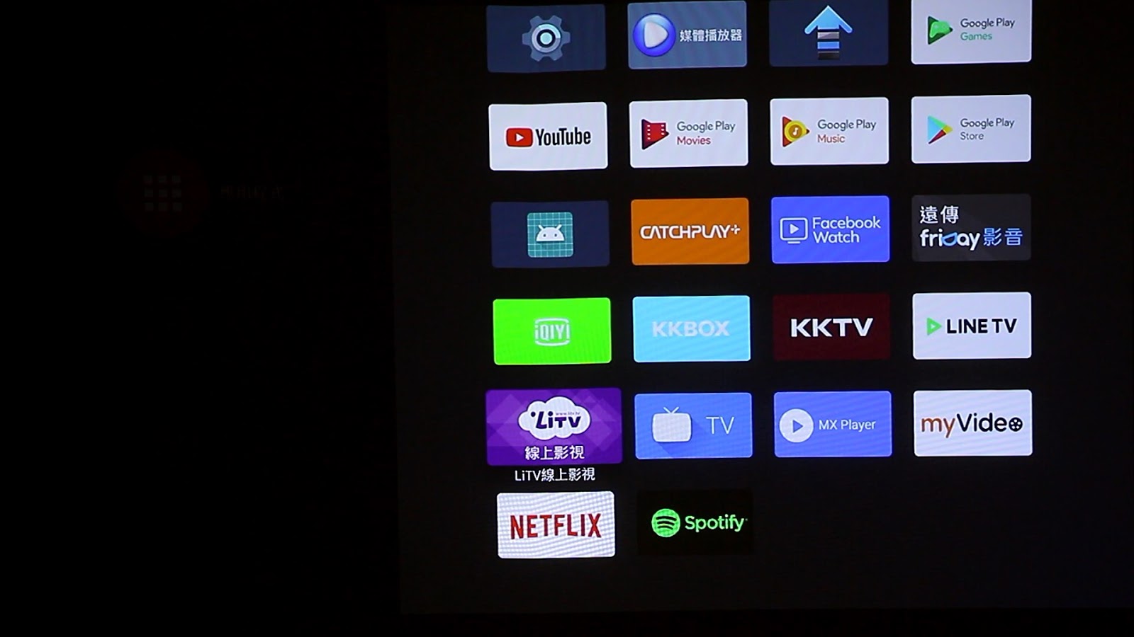 EF-12 內建 Android TV 9.0 系統,並且內建了Google Play,所以除了已經內建的如YouTube,其餘影音平台也可以透過Google Play安裝,常見的影音平台筆者有試過都可安裝,唯獨不支援台灣常用的Netflix(筆者是直接從Google Play安裝,沒試過APK),遇到不支持的平台,筆者建議可以使用EF-12內建Chromecast,直接把手機畫面直接投至EF-12。