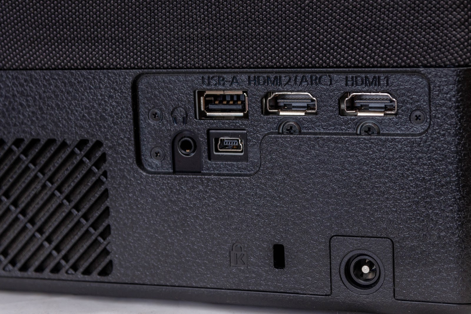 這台的重點特色除了小以外,他的短焦投影1.8m就可以投到80吋,如果你是像筆者一樣喜歡躺在床上打Game看片的人,EF-12放在床頭櫃上投出百吋的畫面沒問題。