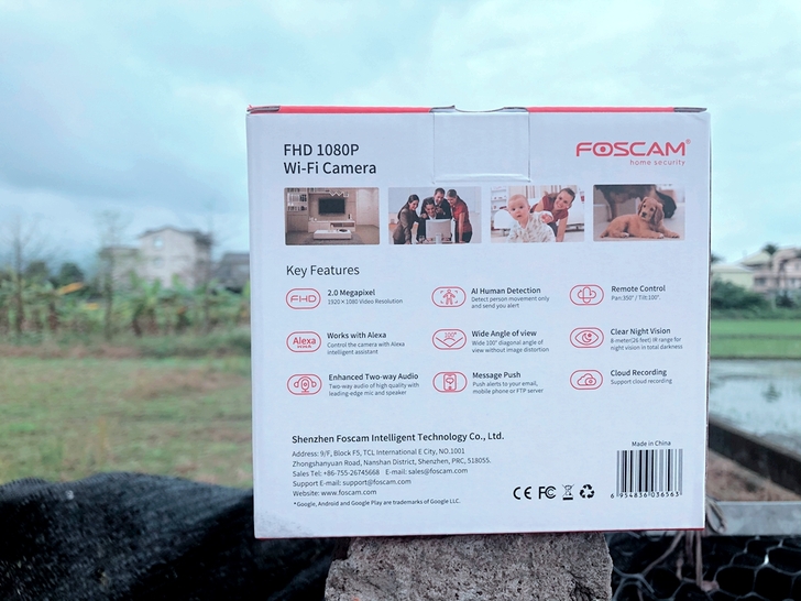 ▲外盒側面有製造廠商資訊,這間監視器公司是中國廠商。或許有些人會擔心影像資料等問題,可是,我這台監視器會放在騎樓外面,監看後院的狀況,所以就沒有隱私或個資等顧慮了。