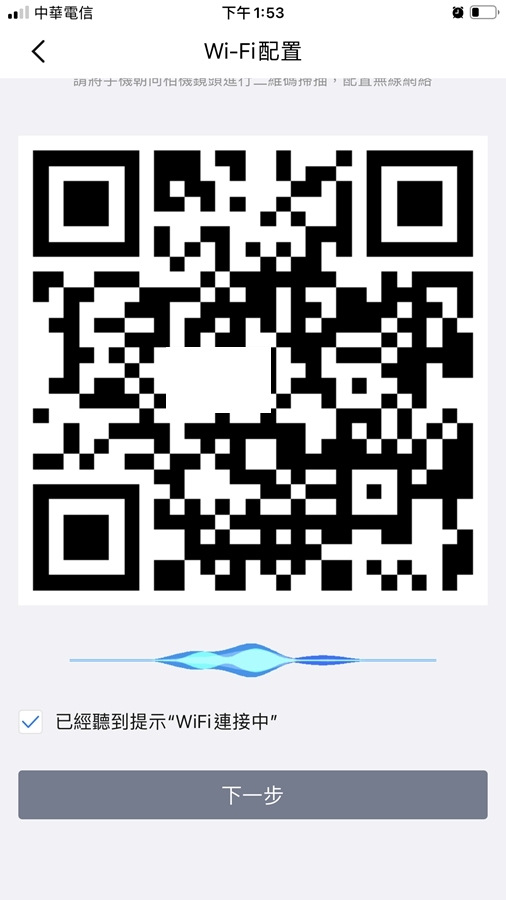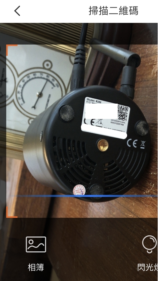 ▲如果選擇【無線】,你的手機跟攝影機都要在同一組的WIFI才可以喔!然後掃描這組QR碼即可。(手機畫面給攝影機拍攝)