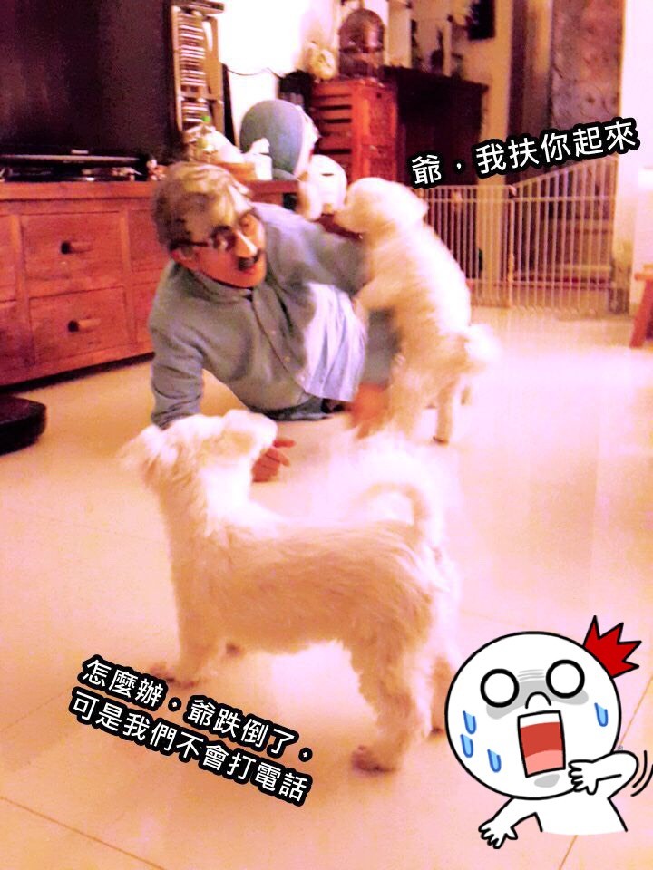 ▲像是老人家跌倒,家裡又沒有人,只剩下毛小孩們,那該怎麼辦呢?