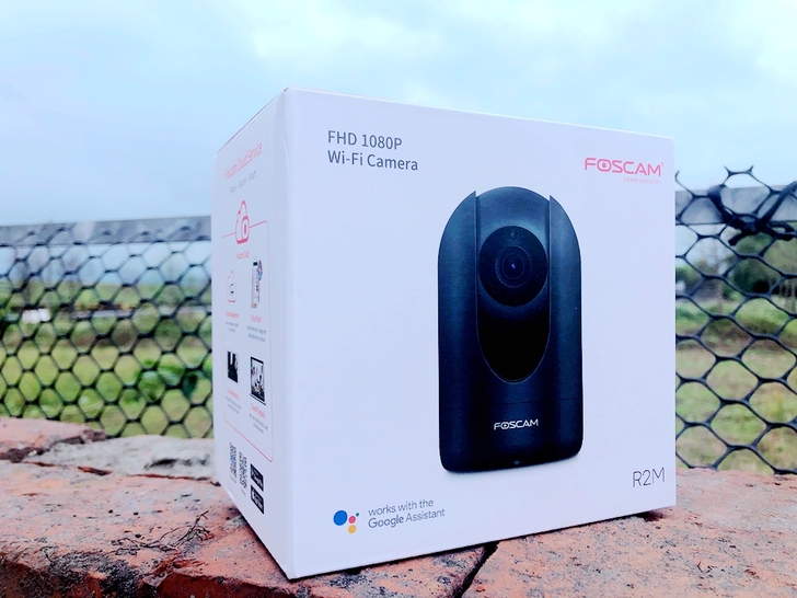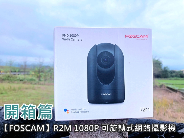 ▲這次要來開箱【FOSCAM】R2M 1080P 可旋轉式網路攝影機,外盒正面左下角有一個Google Assistant的圖案,這款攝影機有支援Google手機助理!