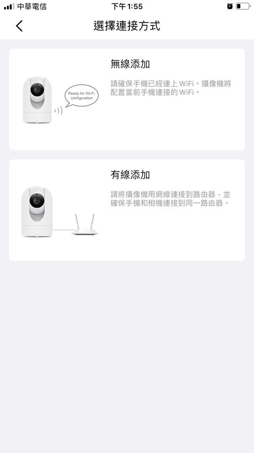 ▲這裡可選擇【無線】或【有線】添加攝影機。