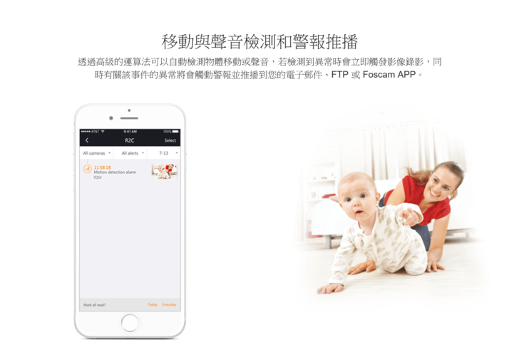 ▲關於上述的情況,【FOSCAM】R2M 1080P 可旋轉式網路攝影機也有設想到囉,所以只要在監視器拍攝的範圍,啟動移動與聲音偵測功能,就可以啟動警報推播,透過AI演算自動檢測物體移動或聲音,若有發生異常,就會立即啟動錄影,且同時發送警報到您的手機、電子信箱,讓您可以即時掌握家裡的狀況。