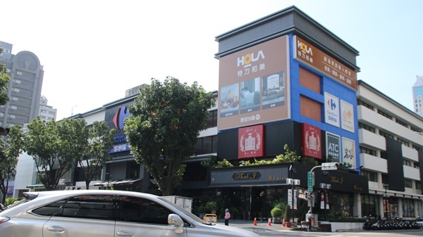 從家樂福走出來就能看到新銳大大紅白相間招牌