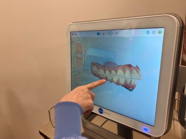 矯正醫師用口掃機放入口中掃一掃在螢幕上就能看到牙齒外觀