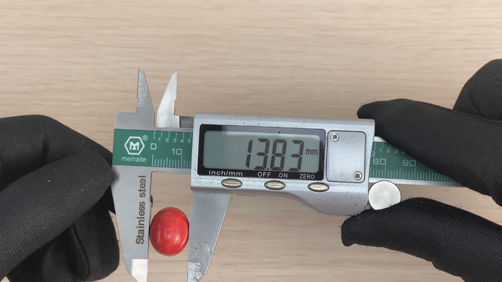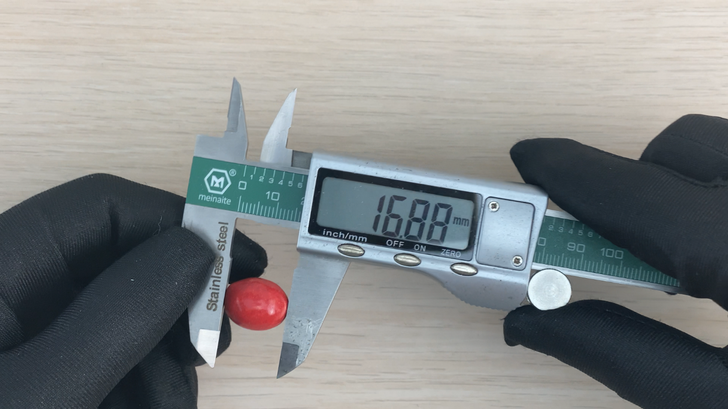 用游標卡尺測量就看得出這個口香糖真的挺大顆的。