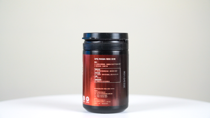整罐重量大約 60.3g。題外話,常看棒球的人都知道運動員很常在嚼口香糖,原因就是有研究顯示嚼口香糖可以提升專注力和反應。所以電競口香糖也許真的是可行的產品喔!