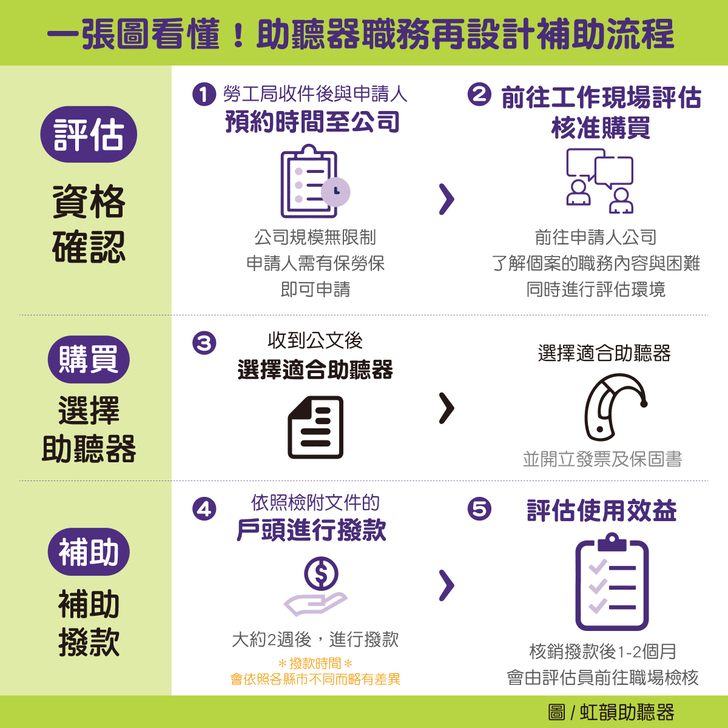 虹韻提供完整的單側聽損聽力補助方案、最高45折起助聽器優惠,即日起至六月底聽力檢查符合55dB,再加碼送空氣清淨機,可至全台43間虹韻助聽器門市、3間聽力所以及到府服務,預約免費聽力檢查、助聽器試聽。並享有業界首推遺失故障送新機、最高六年保固、聽技巧等服務,與政府以及單側聽損協會共同推動單側聽損者更美好的職涯規劃與發展機會。