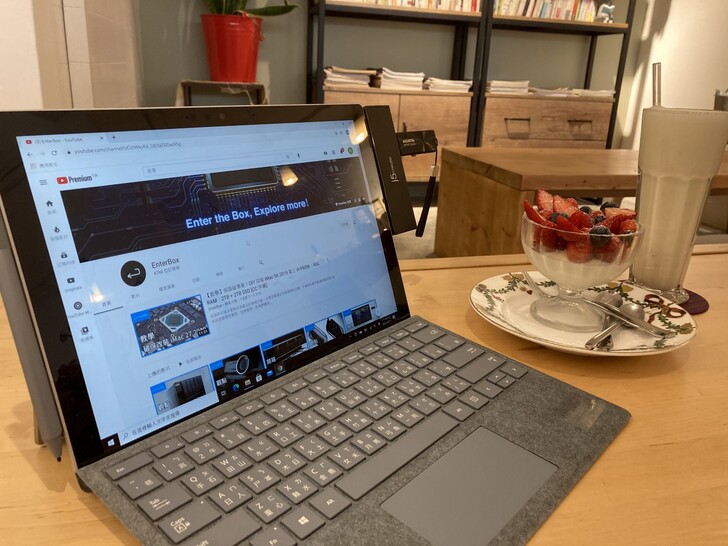充電接頭非常優秀,採用磁吸式設計,放上去立刻吸起來。微軟原廠有一款擴充基座也是靠這個接頭連接。