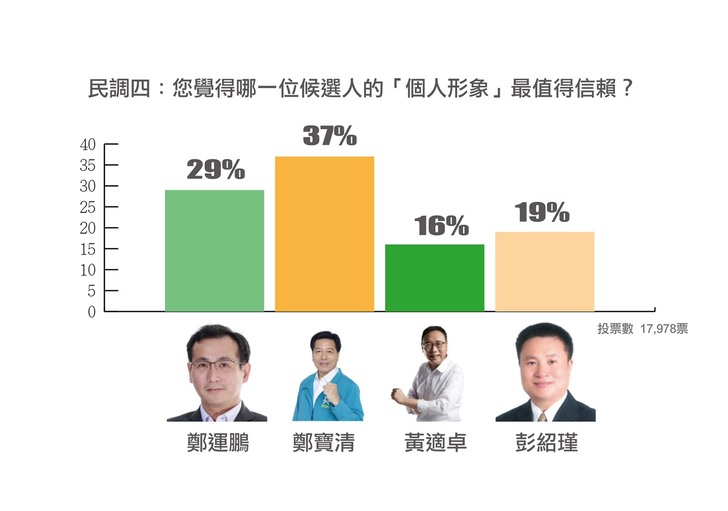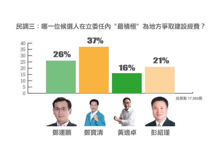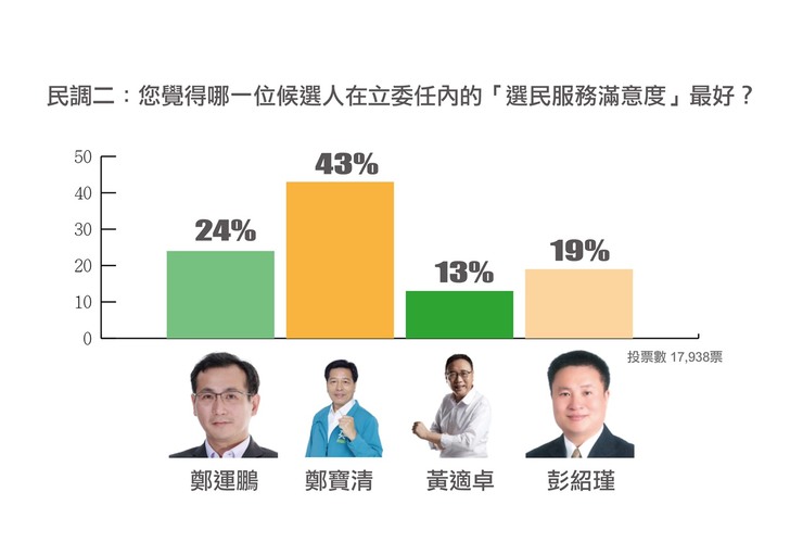 選民滿意度:選民對於候選人過去擔任的職務及地方服務、形象表現的總體滿意度。