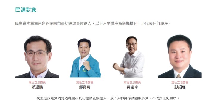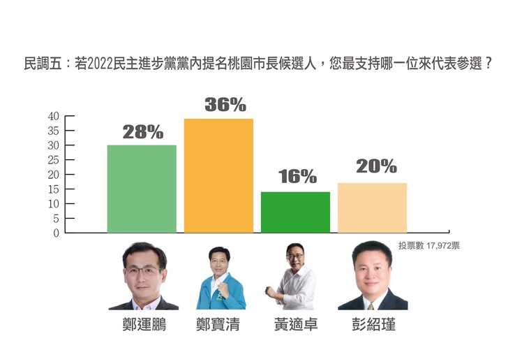 卓越雜誌為瞭解台灣民眾對「 2022 民主進步黨桃園市長候選人」的表現、期待及認同感,進行了網路民調,藉由活動舉行,增進候選人良性競爭的同時,讓民眾了解選情。
