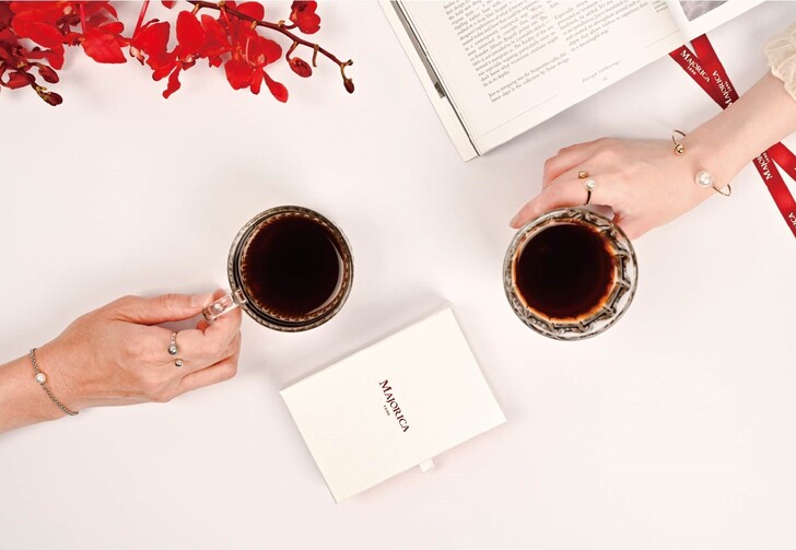 Majorica與台灣「温咖啡」聯名解憂咖啡語錄掛耳包,於母親戴上珍貴珍珠同時,一同品嚐/Majorica提供