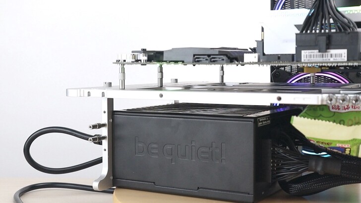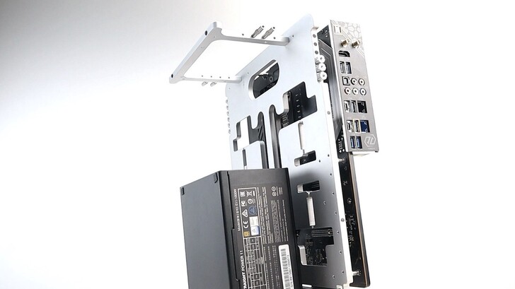 電源供應器下置的另一個目的,就是將整個主機直立時的重心下移。這樣就可以將整個裸測架當作是直立的展示臺,方便拍攝主機板和整機展示。