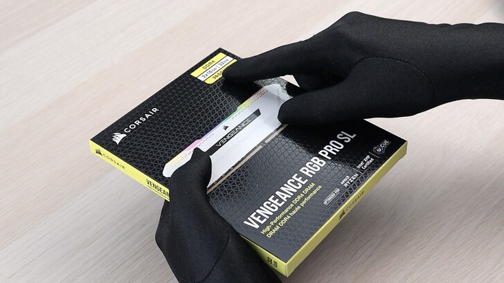 這盒 RAM 是 CORSAIR 的 VENGEANCE RGB PRO SL。盒裝主要是黑色為底,包裝表面有三角形排列的局部光,手感不錯。