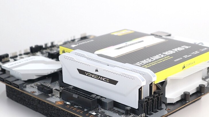 這次搭配 Intel 第 11 代處理器的測試平台。相較上一代 Comet Lake 桌機時脈預設為 2933MHz,這次第 11 代 Rocket Lake 預設時脈升級到 3200MHz,再加上