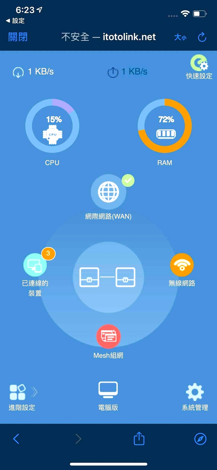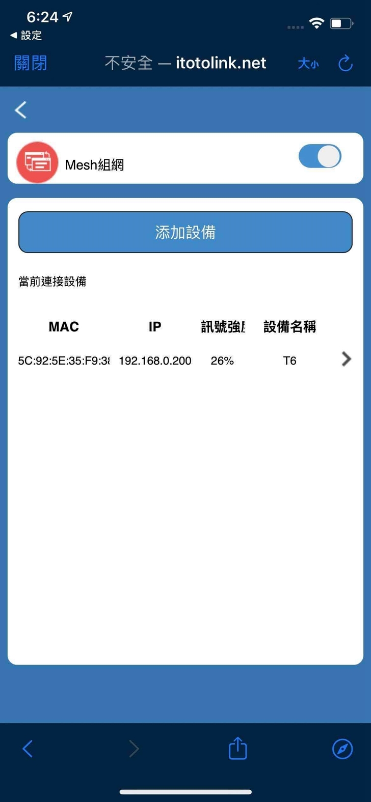設定機器不會太困難, 只要有手機連上 T6 MESH 的主路由就可以快速進行設定, 預設登入地址為 itotolink.net, 亦可使用QRCODE掃描來進入設定畫面.