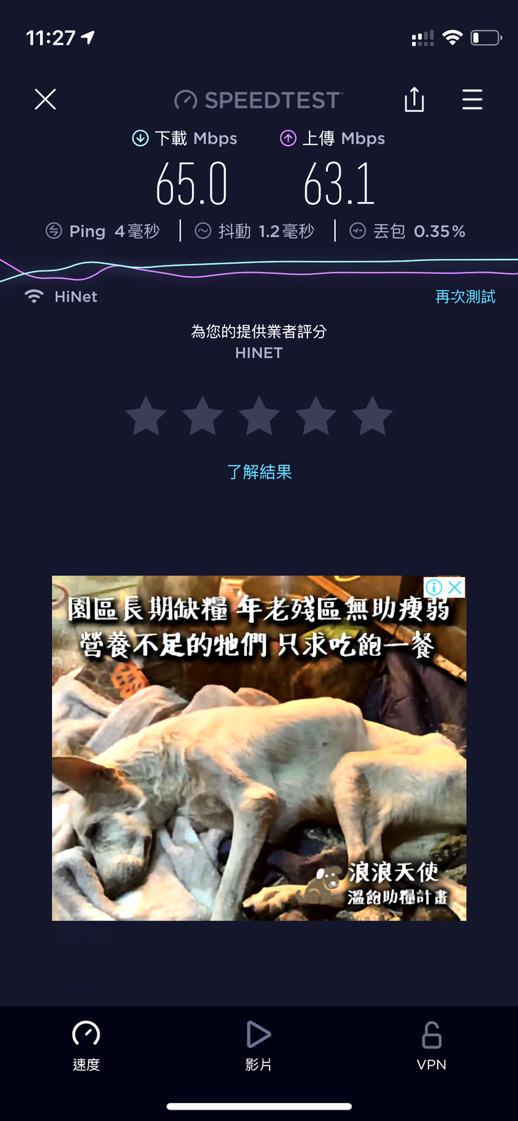 若將主路由放置在三樓, 從路由放置在一樓, 則是顯示訊號極差的紅燈, 此時連上網都無法, 因此到目前為止可以了解到兩個 T6 所組成的 MESH 網路是可以跨單樓層是沒問題的, 而且在裝置端上的訊號均是滿格, 實測成績也都還蠻不錯的.