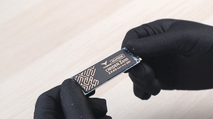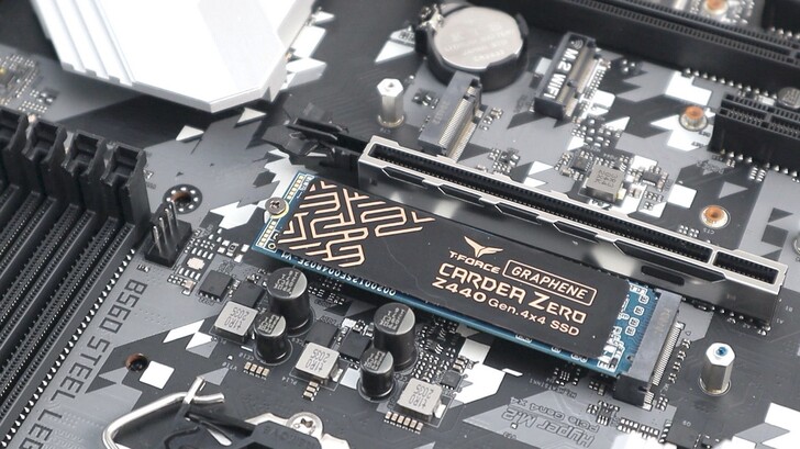 像 Z440 這樣僅帶薄型散熱片的 SSD 很多,有的只是在鋁金屬薄型散熱片上貼雙面膠,在導熱效果上通常就沒有 Z440 這麼好。因為它標榜使用石墨烯銅箔,可以加強導熱能力。