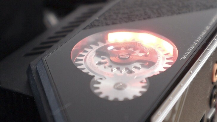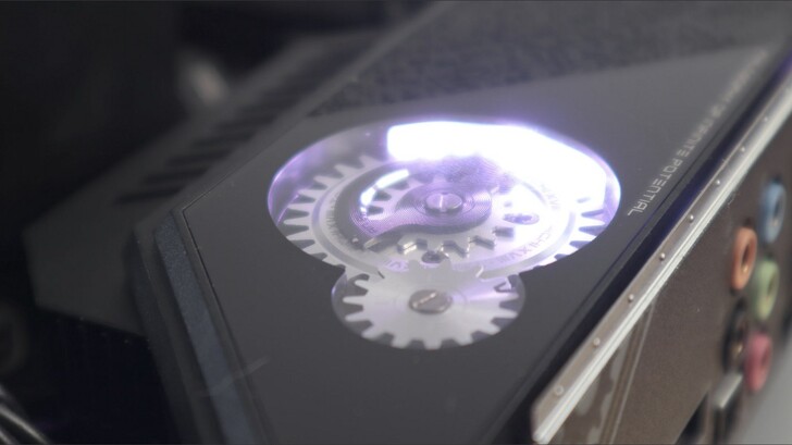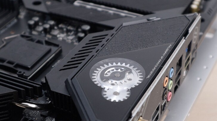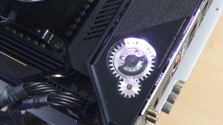 Z590 上方的散熱片,有三顆固定的齒輪。如果把螺絲轉鬆一點,也是可以自己讓他飛快轉動。