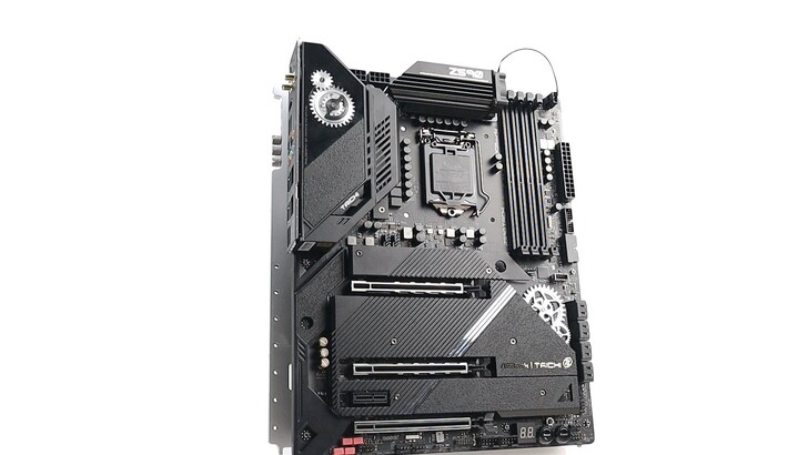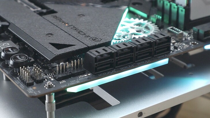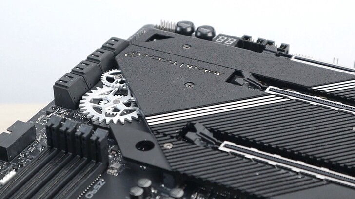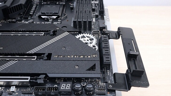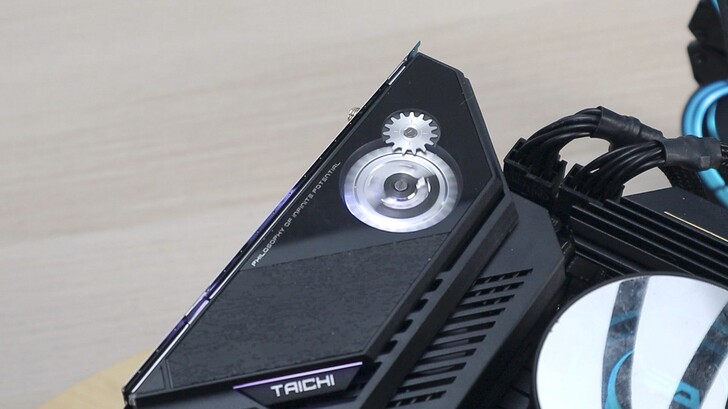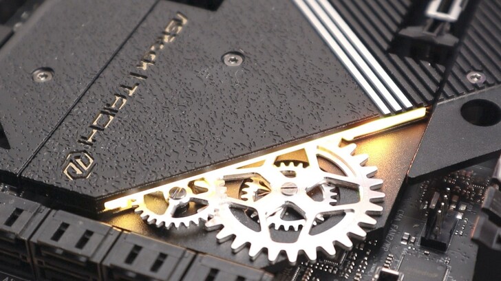 Z590 晶片組上面也有齒輪的造型,周圍還有 RGB 燈光秀。
