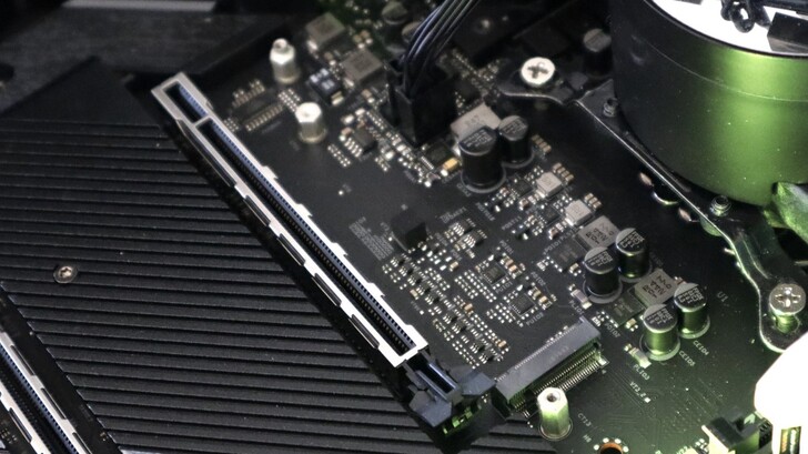 安裝後,發現 SSD 因為有底蓋,厚度比一般 M.2 SSD 還厚,剛好會卡碰到主機板隨附的支撐墊。可以自行移除支撐墊,或改用比較矮的支撐墊,就 OK 了。
