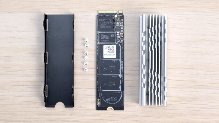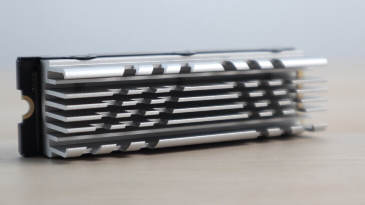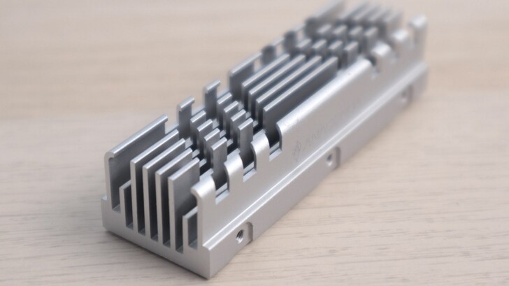 可以看到散熱片有一定高度,加上底部固定,讓整個 SSD 的厚度變成非常厚實。