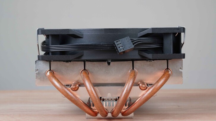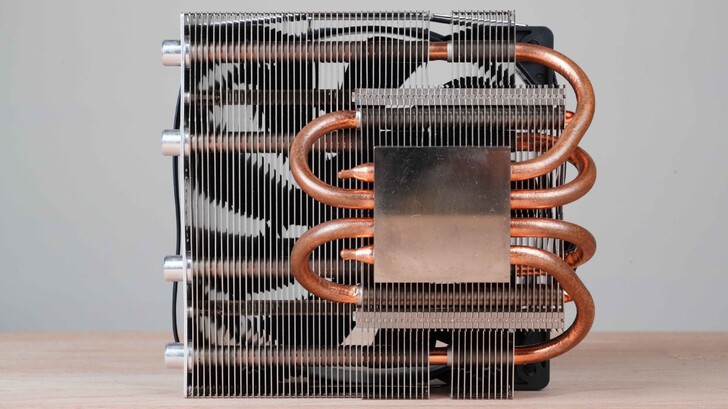 散熱器看起來像六根導熱管,實際上是四根,只是其中兩根特別長,彎了一大圈。