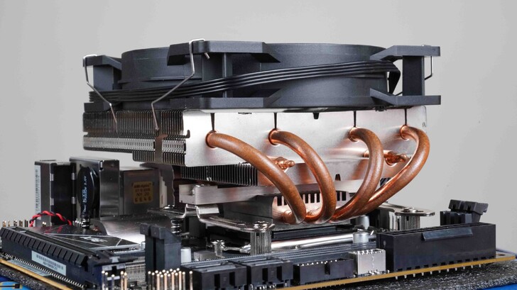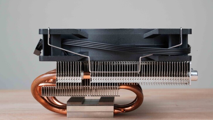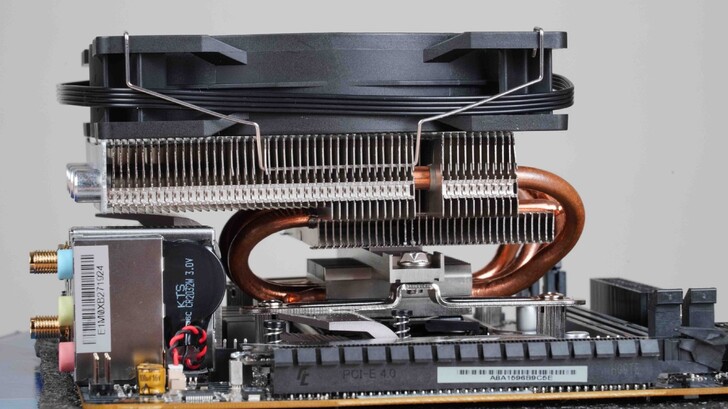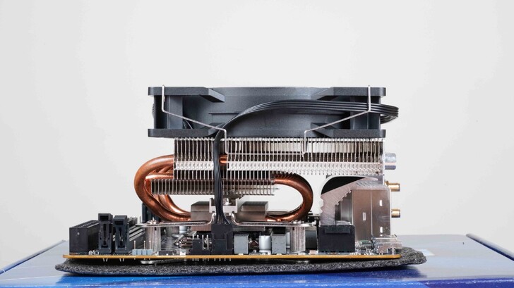 與原廠散熱器不同,外觀乍看之下是下吹式散熱器,實際上則是類似於塔散的設計。只是把塔擺的方式轉了 90 度,這麼做的好處是它變得像下吹式的高度不佔空間,又能擁有接近一般塔散的冷卻能力。