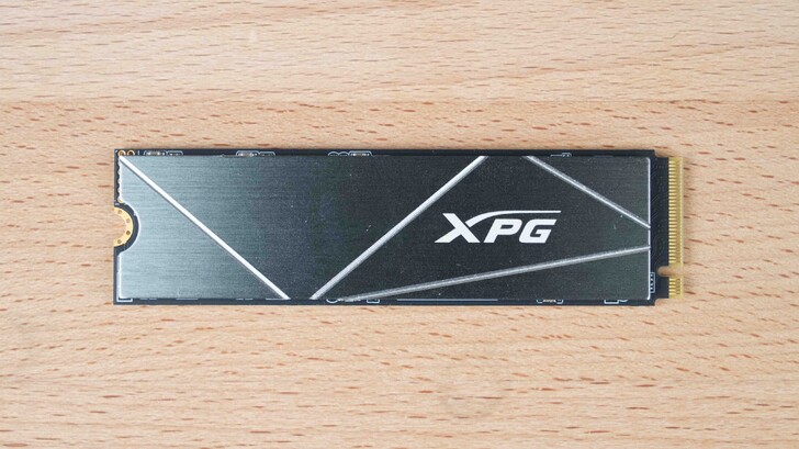 ADATA XPG GAMMIX S50 Lite 1TB 正面看是一片鐵灰色的髮絲紋散熱片,上面帶有一些線條造型和 XPG 字樣。厚度接近 1mm,很硬,不易折彎。