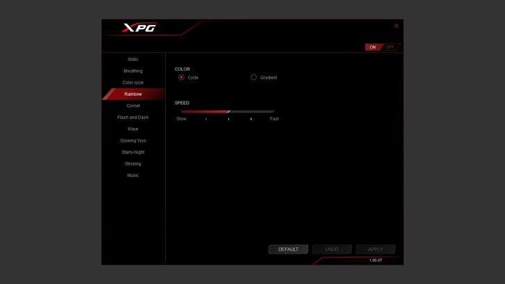 除了各大板廠的程式之外,ADATA XPG SPECTRIX D50 也可以透過 XPG 自家開發的 XPG RGB Sync App 來控制燈效模式。