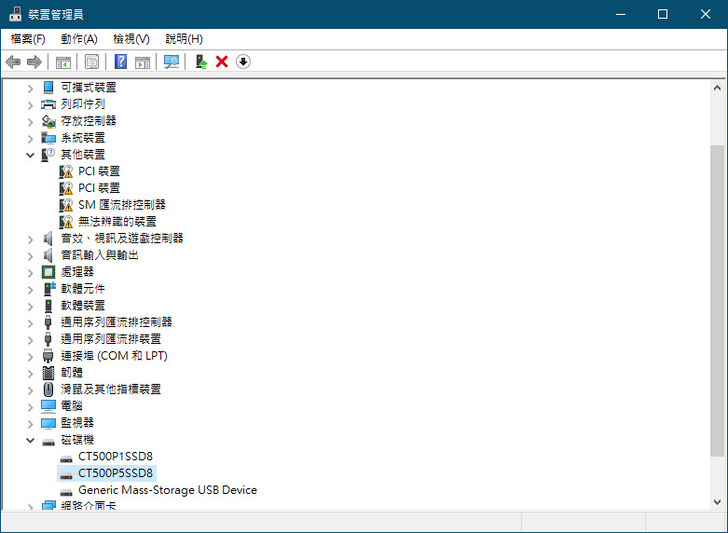 本次標的P5與先前的P1兩支SSD均能正常抓取