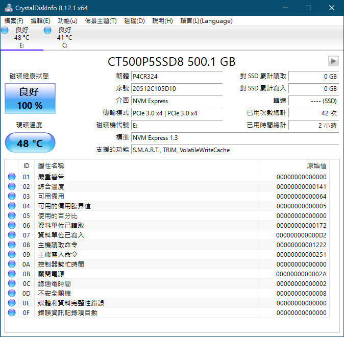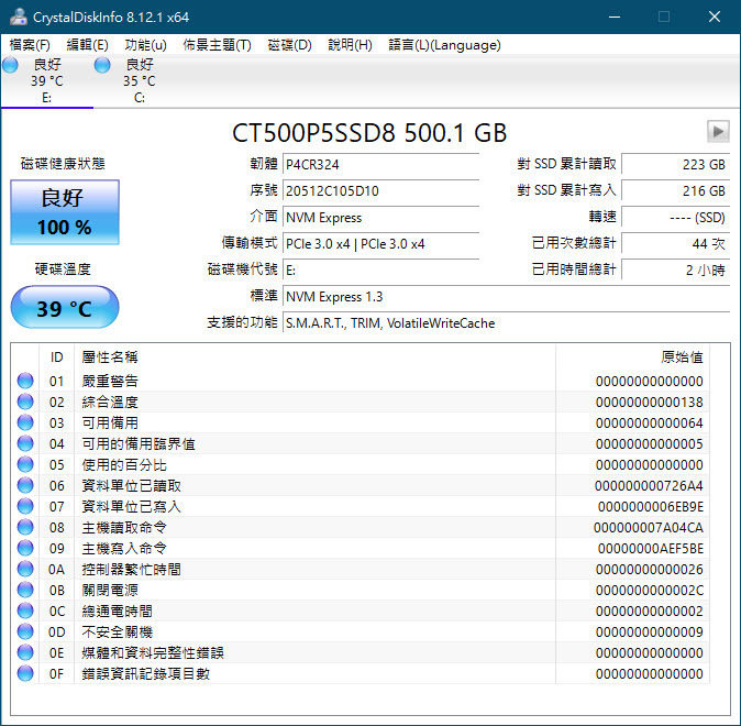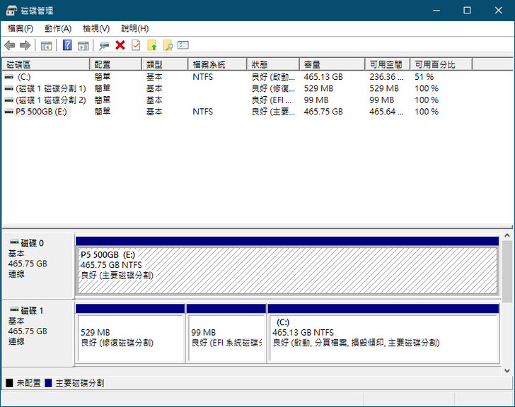 更版完成就可以看到此兩顆SSD P1(開機碟)與P5(此次測試標的)