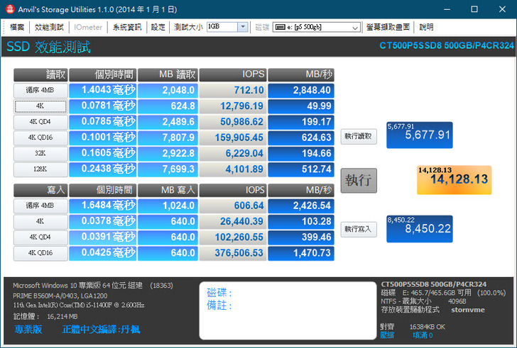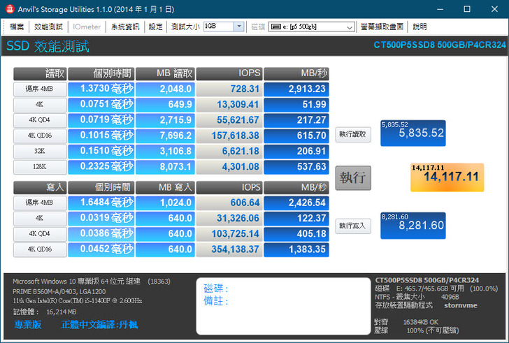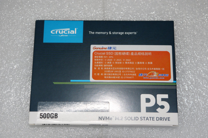 Crucial P5 500GB TLC NVMe M.2 (本次測試主體)