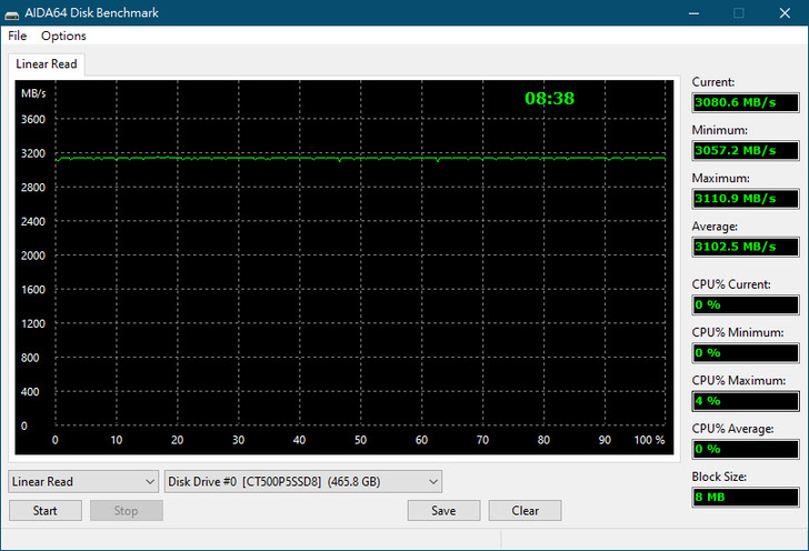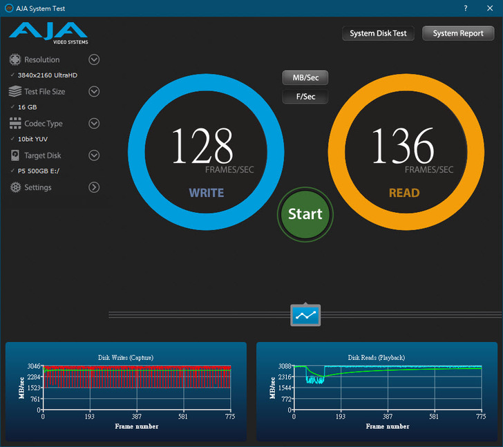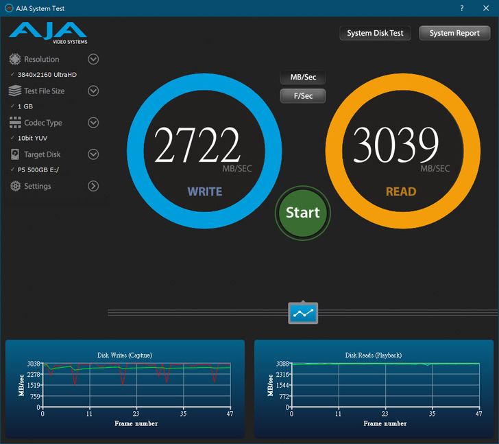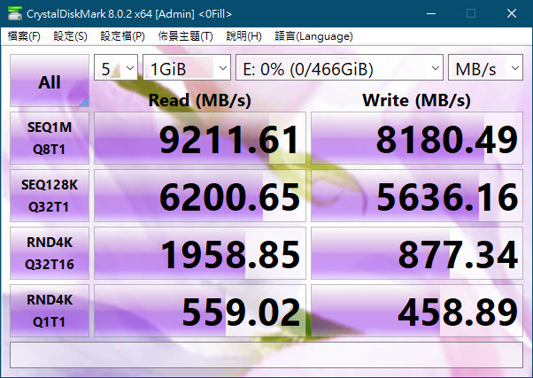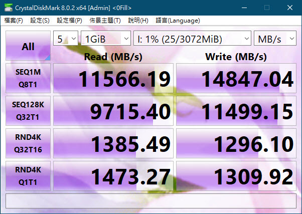 解析度4K 檔案大小為1GBytes 讀取3039MB/Sec 寫入2722MB/Sec