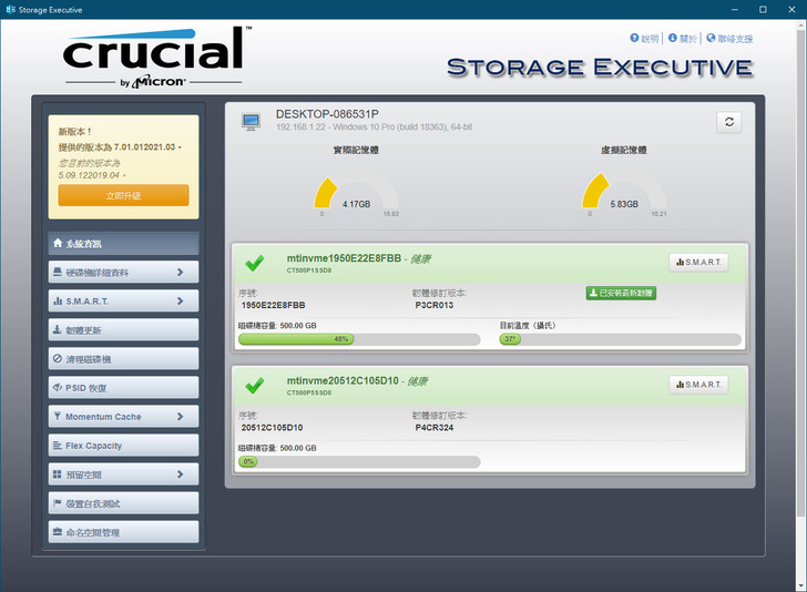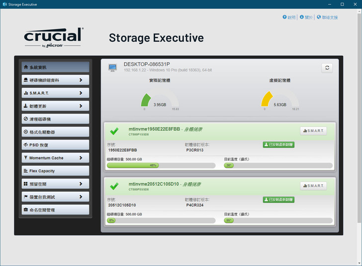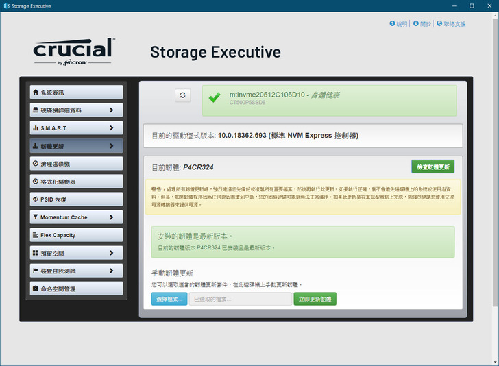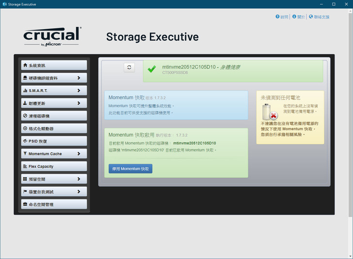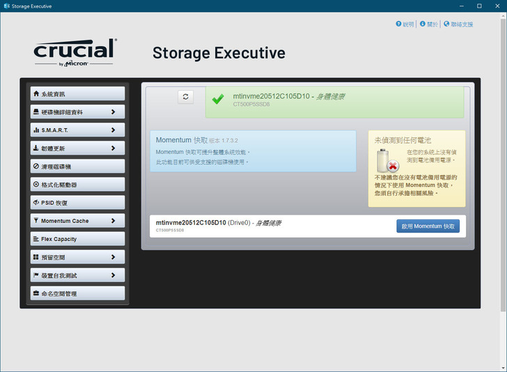 再來則是Crucial獨家工具軟體 先前其實就有使用過(筆電MX500、桌機P1)