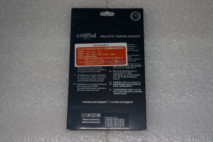 背面除了跟正面一樣有著BALLISTIX標之外,Crucial標誌也在下面