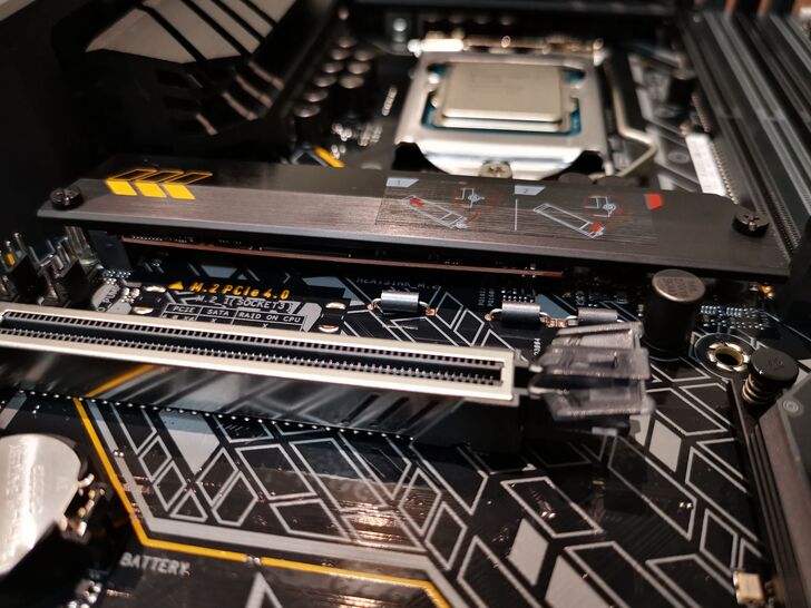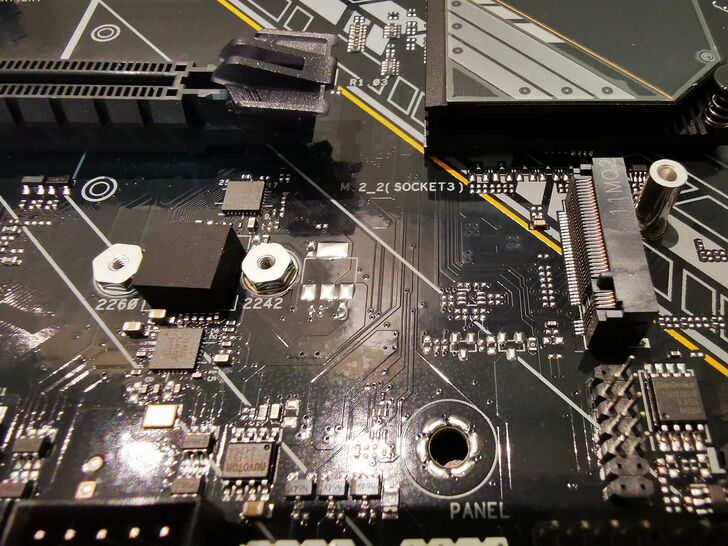 ▲圖中M.2 SSD最長版位置有顆白色的,那是ASUS的Q-Latch,可以快拆SSD