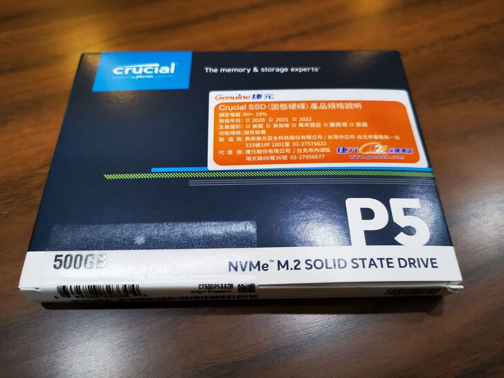 ▲本體!P5只是美光給這產品的品名,並非規格。2280是指它的尺寸,意思是寬22mm、長80mm