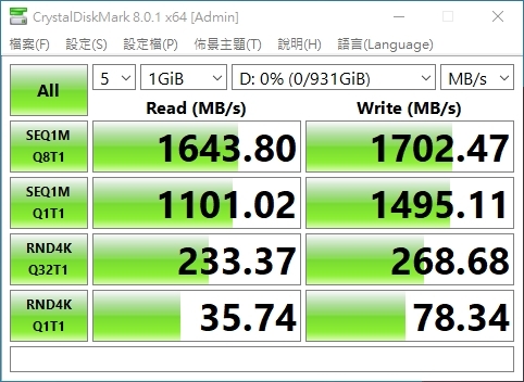 讀寫約在 1700MB/s 跟 1600MB/s 拿來傳送大檔案移動交換蠻快的