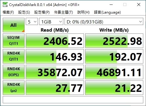 內接性能測試,移動搬檔4K大小傳輸讀取 2572MB/s 寫入 2298MB/s