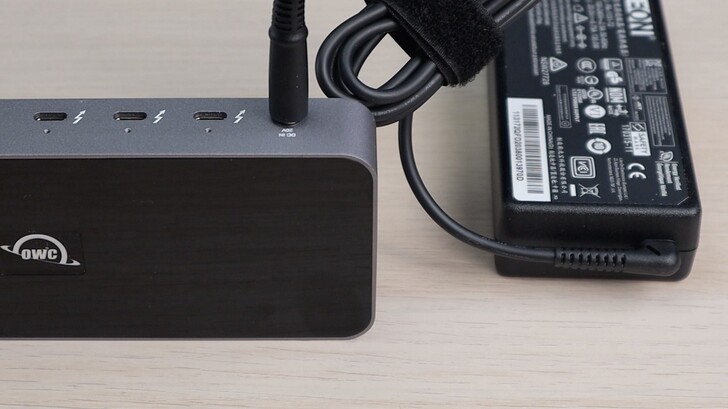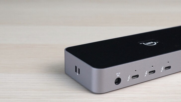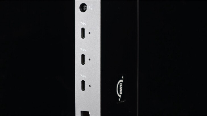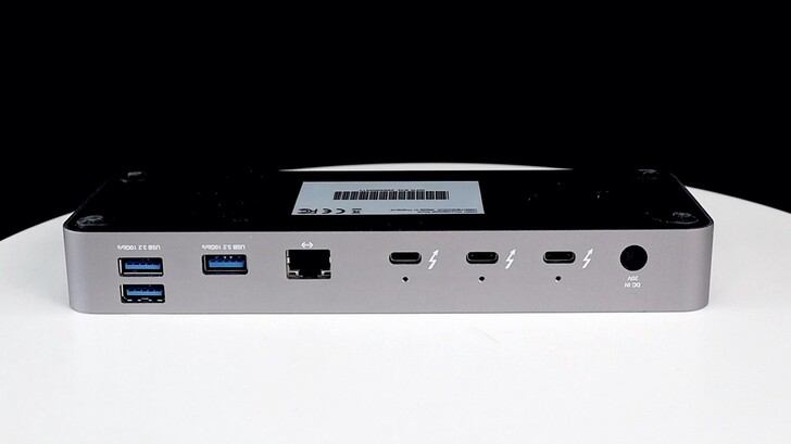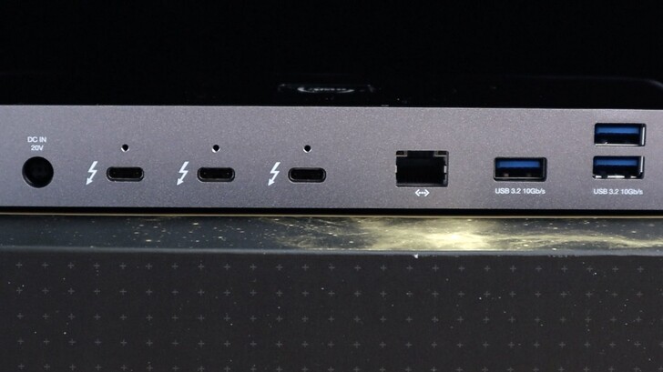 後置有一個 20V 電源接口,三個 Thunderbolt 4 downstream(每個 Thunderbolt 上都有獨立的狀態燈)、一個 GbE 網路孔、三個 USB3.2 Gen2 10Gb/s。