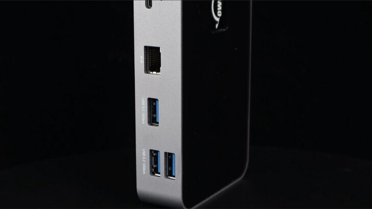 整體外觀設計相當簡單、純粹,I/O Port 的距離也都滿合理的,不太容易遇到卡機構的狀況。這個 Dock 並沒有標準的 HDMI 和 DP 影像輸出,若螢幕支援 USB-C DP 傳輸,就可以直接讓螢幕連接 Dock 的下行 Thunderbolt。