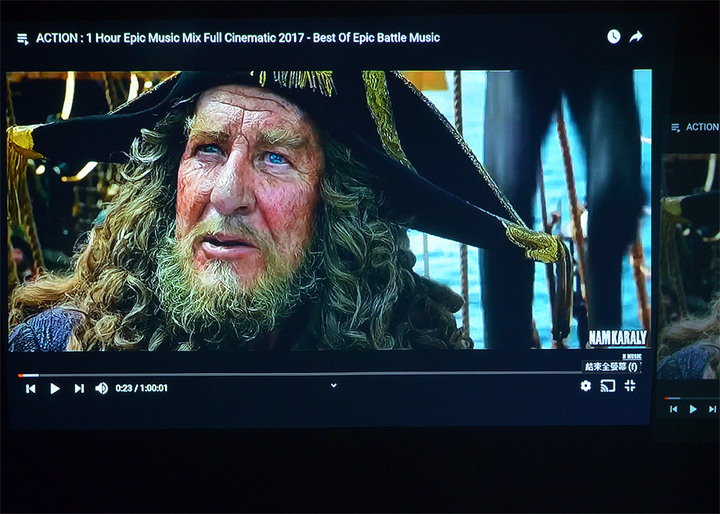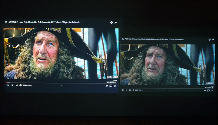 ▲ 同樣透過擁有史詩震撼配樂的神鬼奇航預告片,來體驗 EPSON EF-12 與 BenQ GP20所呈現出的畫面與震撼力!