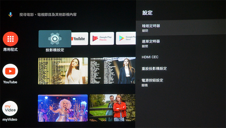 ▲ 最後一項設定選單,裡頭有睡眠定時器、選單定時器、HDMI CEC、重設投影機設定,以及電源按鈕設定供選擇。