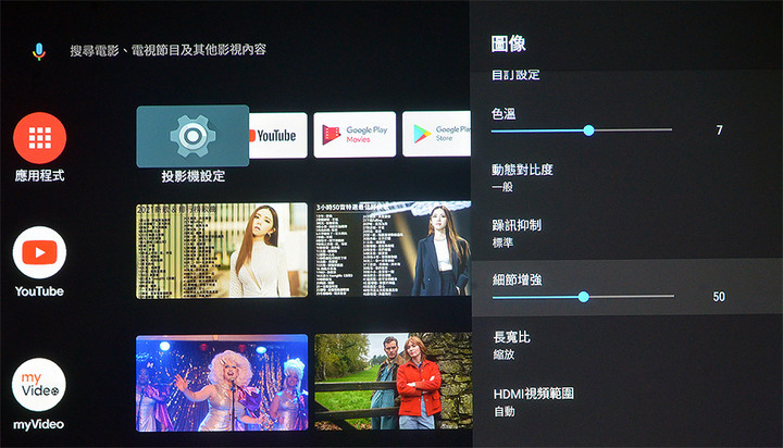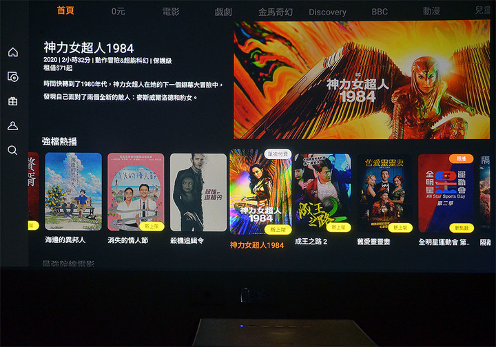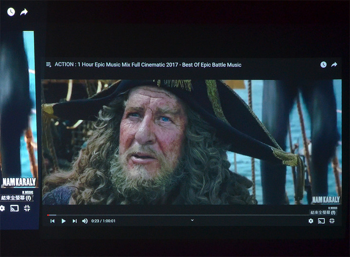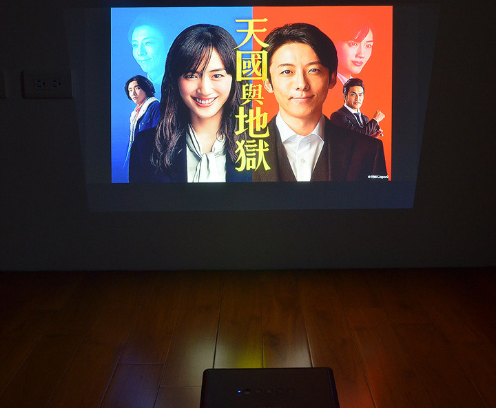 ▲ 關燈就是投影機的強項所在,不過關燈與不關燈的環境下相比,關燈的話,畫面清晰度、顏色飽和度就明顯清楚很多,這在觀賞影片時的爽度就差很大。